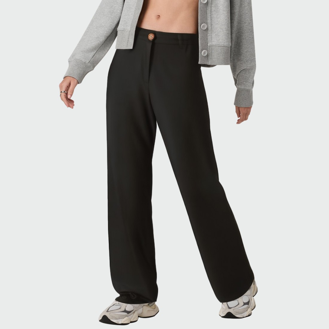 Classic solid color design: Simple and stylish, it easily pairs with any top, perfect for everyday or work wear.Button-zipper placket: The button and zipper closure provides easy on and off, a secure fit, and adds a touch of aesthetic detail.Practical side pockets: Conveniently store small items like your phone and keys, combining functionality with style.Belt loops: Compatible with a belt for a defined waistline and enhanced overall look.High-rise cut: Sculpts the legs, elongates the figure, and adds an elegant touch.Material: 100% polyesterCare: Hand wash or machine wash on the gentle cycle. Avoid using bleach. Air dry, avoiding prolonged exposure to direct sunlight. Iron on a low setting.