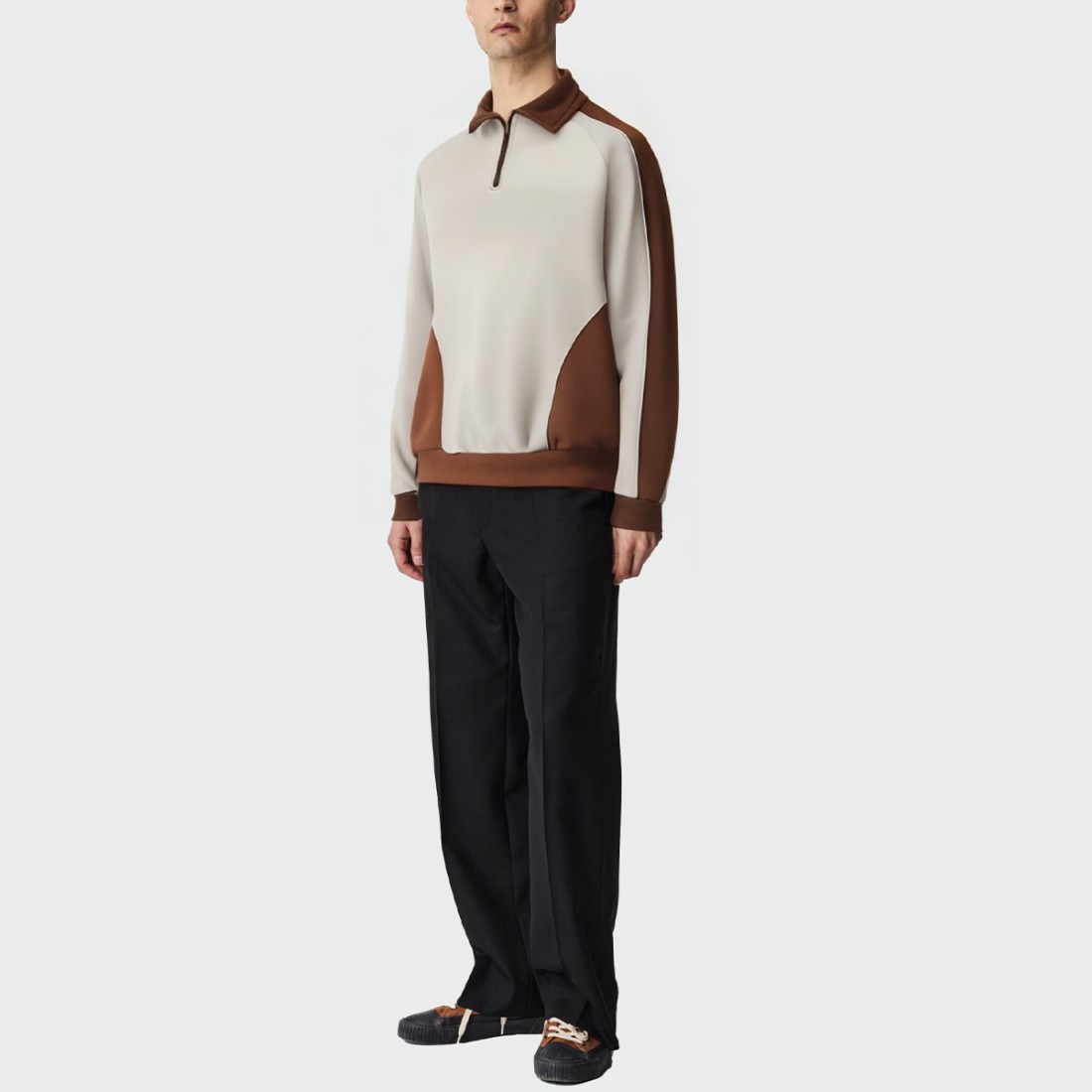 Bold contrast patchwork design: Bold contrast patchwork accents create a stylish and trendy look, elevating your overall look.Lapel design: Classic lapel design creates a formal yet casual feel, easily paired with a variety of bottoms.Zipper placket: Front zipper for easy on and off, adding a modern, sporty feel.Elastic cuffs: Elasticated cuffs fit snugly around the wrist for comfort and wind protection.Elasticated hem: Elasticated hem enhances the fit, maintains the overall shape, and allows for greater freedom of movement.Material: 100% cottonCare: Hand wash cold or machine wash on a gentle cycle. Avoid bleaching. Air dry, avoid high temperatures. Low iron is recommended.