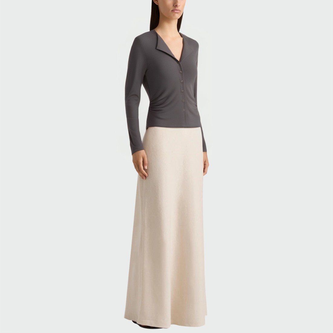 Solid color design: Simple and versatile, easy to pair with a variety of bottoms, suitable for everyday and work wear.V-neck, long sleeves: The elegant V-neck design flatters the neckline, and the long sleeves are cut for both practicality and comfort.Side pleats: Detailed pleats add layering and visual interest, highlighting the stylish look.Button closure: Easy on and off, maintaining a neat and tidy look.High-low hem: Short in front, long in back, creating a light and flowing silhouette, adding a dynamic and elegant touch.Material: 100% polyesterCare: Hand wash or machine wash on a gentle cycle, max. 30°C. Avoid using bleach. Iron on a low heat setting, avoiding direct heat contact with the fabric. Hang to dry, out of direct sunlight.