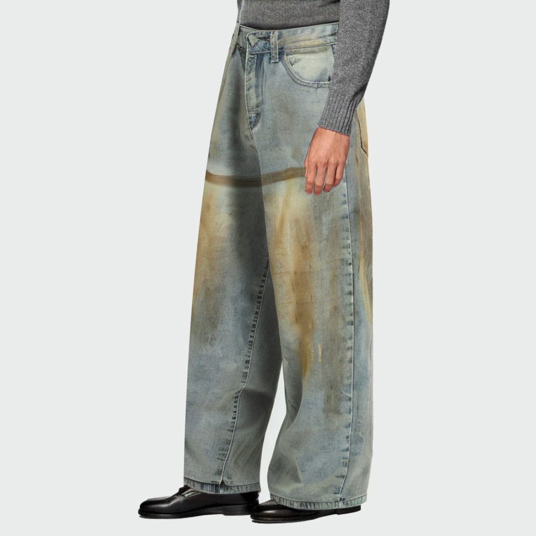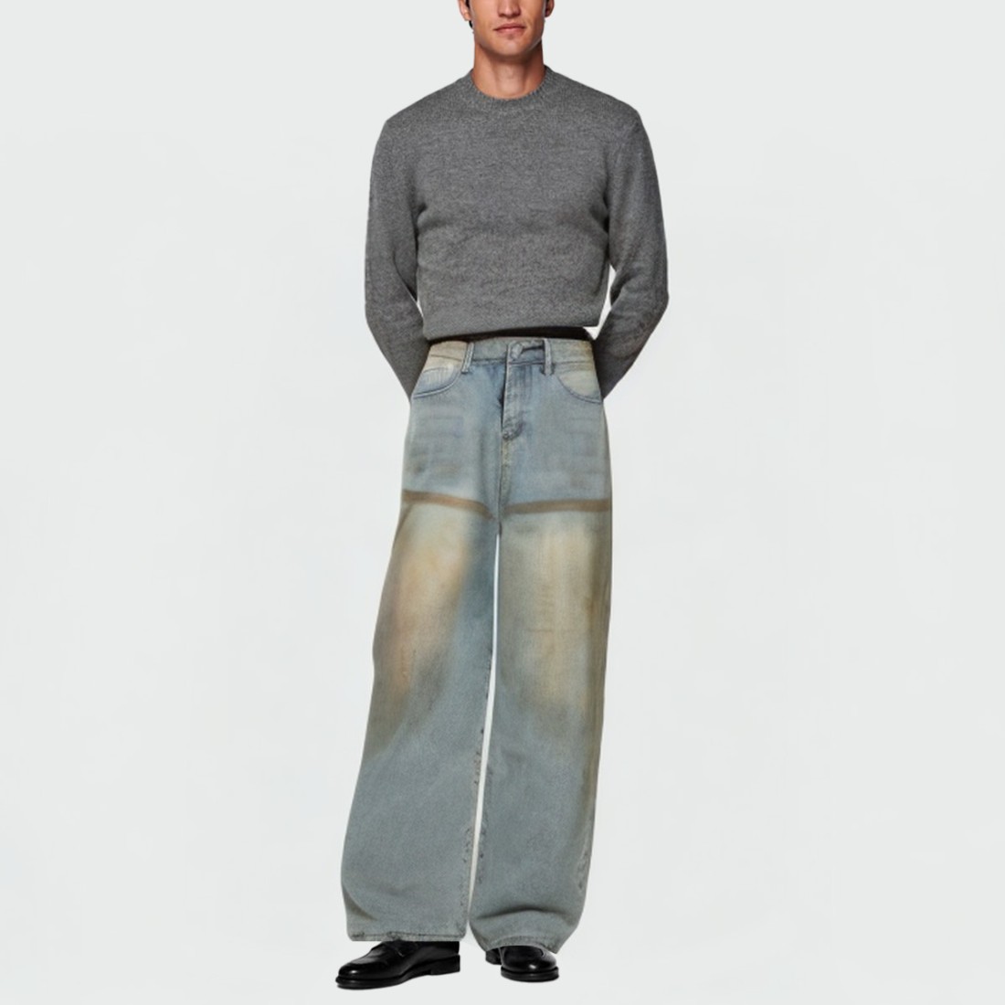 Dirty Wash Design: A unique wash effect creates a naturally worn and effortless style that reflects your personality.Button-Zipper Fly: A classic, secure design that’s easy to put on and take off, yet durable.Five Classic Pockets: Strategically placed front and back pockets provide practical storage and a stylish aesthetic.Belt Loops: Compatible with a variety of belts for added styling versatility.Loose, Wide-Leg Cut: Comfortable and breathable, offering freedom of movement, perfect for everyday casual wear or streetwear.Material: Spandex/CottonCare: Wash inside out in cold water. Avoid bleaching. Air dry, avoid high temperatures in the dryer. Low iron recommended.