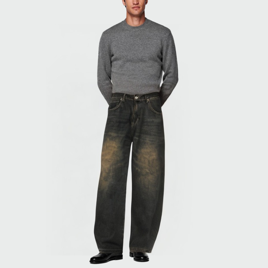 Distressed washed loose wide-leg men’s jeans
