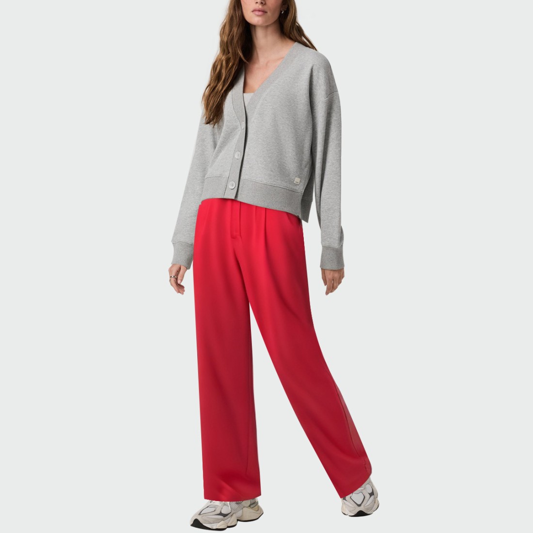 Fashionable red high waist women’s wide leg pants