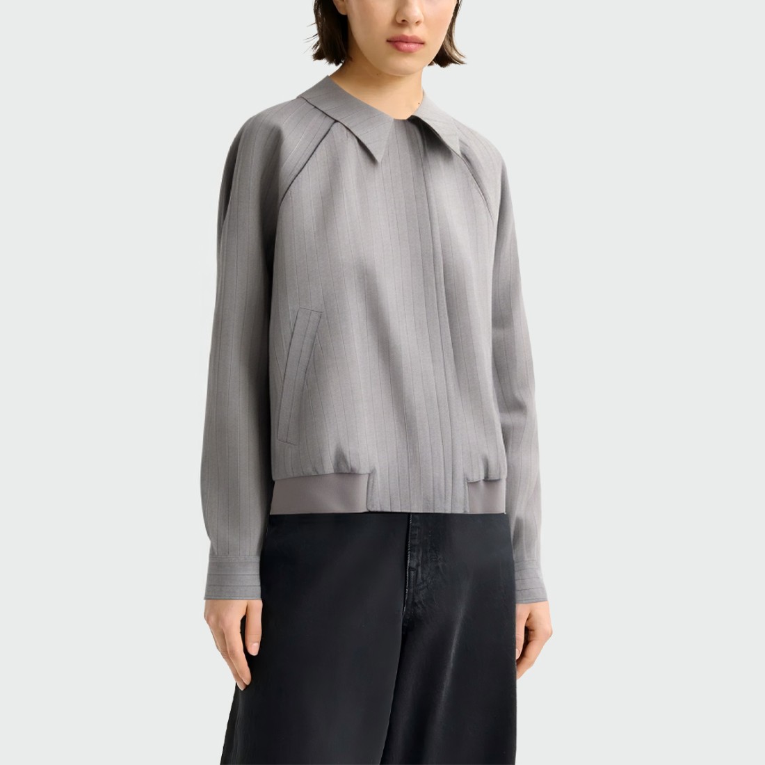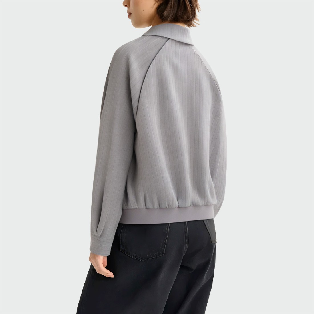Striped grey lapel zippered women’s jacket