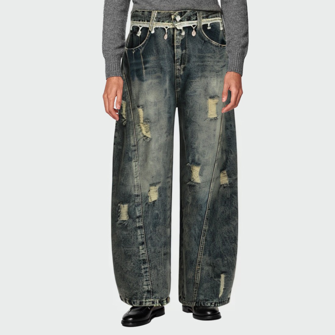 Distressed Hole Details: Stylishly distressed holes create a casual, street-inspired look.